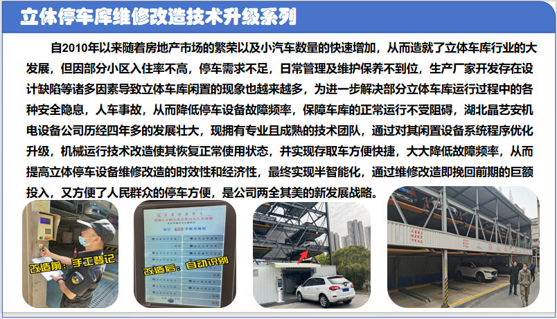 湖北晶艺安机电设备有限公司主营:立体停车场、智能停车场设备、智能停车场收费系统等!